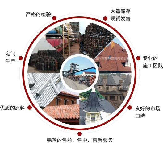 在建筑屋面瓦上工廠擁有完善的陶土瓦自動生產線,公司擁有機械類.設計類.電子類.安裝類.售后類專業技術員工300人。以系統化.標準化.規范化確保長期的產品穩定。